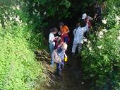 16 Bachpaten, zuständig für einen ca. 100 m langen Abschnitt der "Aeschbesch" zwischen Bruch und Buschdorf. 16 parrains de rivière, responsables pour un tronçon de rivière sur la "Aeschbesch" entre Bruch et Buschdorf. 1. Bachbegehung am 23. Mai 2003 1ère sortie le 23 mai 2003 Die erste Bachbegehung fand nicht am zugewiesenen Bachabschnitt der "Aeschbesch" sondern an der "Mandelbaach" statt. Die "Mandelbaach" gehört nicht zum Einzugsgebiet der Attert. Sie zeigt jedoch, im Gegensatz zur "Aeschbesch" eine Vielzahl an wirbellosen Tieren auf, die einen Einstieg in die Welt der Wirbellosen erleichert. Aufgaben: Suchen, Fangen und Bestimmen der wirbellosen Tiere im Bach. La première sortie menait les élèves vers la "Mandelbaach". Cette rivière ne fait pas partie du bassin versant de l'Attert. Or, au contraire de la "Aeschbesch", la "Mandelbaach" dispose d'un grand nombre d'invertébrés, ce qui a facilité aux élèves le premier contacte avec le monde des invertébrés. Missions: Chercher, collecter et déterminer les invertébrés de la rivière. 2. und 3. Bachbegehung am 7. Juli und am 15. Juli 2003 2ème et 3ème sortie le 7 juillet et le15 juillet 2003 Die 2. und 3. Bachbegehung fand an der "Aeschbesch" statt. Am 7. Juli wurden die Bachpaten von Radio RTL begleitet. Die Sendung "RTL Bambino" brachte am darauffolgenden Tag eine Reportage über die Bachpaten der "Aeschbesch" und die Aktion "Bachpatenschaft im Atterttal". Aufgaben am 7. Juli: Suchen, Fangen und Bestimmen der wirbellosen Tiere im Bach. Bestimmen der biologischen und chemischen Wasserqualität (pH, Nitrate). Aufgaben am 15. Juli: Messen der Bachbreite, der Bachtiefe und der Fliessgeschwindigkeit. La 2ème et la 3ème sortie menait les élèves sur l'"Aeschbesch". Le 7 juillet, les parrains de rivière étaient accompagnés par la radio. RTL a fait un reportage sur les parrains de rivière de l'"Aeschbesch" et l'action "parrainage de rivières dans la vallée de l'Attert". Missions le 7 juillet: Chercher, collecter et déterminer les macroinvertébrés de la rivière. Déterminier la qualité biologique et la qualité chimique (pH, nitrates) de l'eau. Missions le 15 juillet: Mesurer la profondeur et la largeur du ruisseau ainsi que la vitesse du courant. |