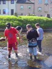 10 Bachpaten, zuständig für einen ca. 100 m langen Abschnitt der Attert im Zentrum von Useldange. 10 parrains de rivière, responsables pour un tronçon de rivière sur l'Attert au centre de Useldange. 1. Bachbegehung am 19. September 2003 1ère sortie le 19 septembre 2003 Aufgaben: Suchen, Fangen und Bestimmen der wirbellosen Tiere im Bach. Missions: Chercher, collecter et déterminer les macroinvertébrés de la rivière. 2. Bachbegehung am 17. November 2003 2ème sortie le 17 novembre 2003 Aufgaben: Suchen, Fangen und Bestimmen der wirbellosen Tiere im Bach. Bestimmen der biologischen und chemischen Wasserqualität. Missions: Chercher, collecter et déterminer les macroinvertébrés de la rivière. Déterminer la qualité biologique et chimique de l'eau. |